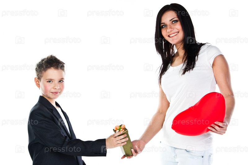 Маленький мальчик дарит своей маме подарок