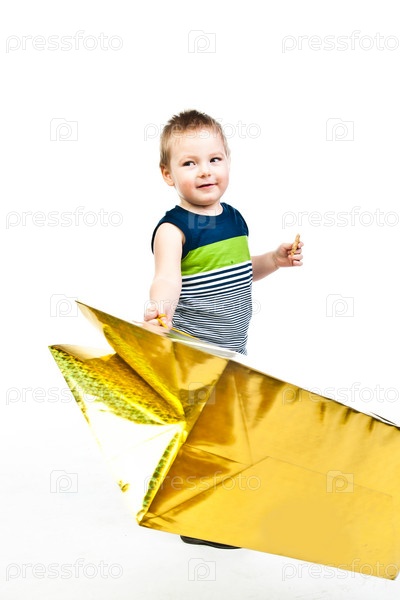 Маленький симпатичный мальчик с подарком