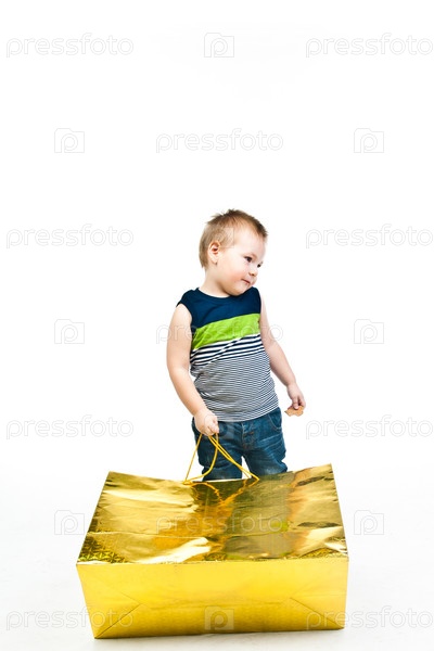 Маленький симпатичный мальчик с подарком