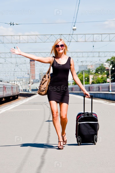 Молодая и красивая женщина на перроне