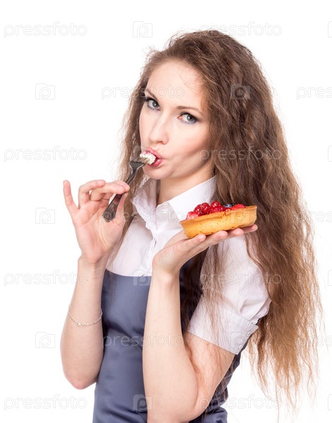 Женщины ест пирожное