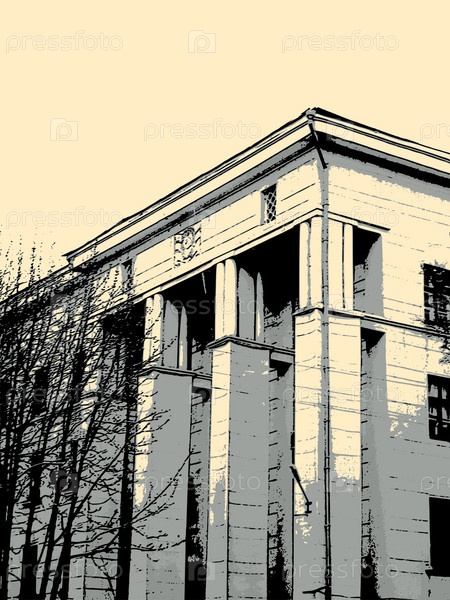 Городской пейзаж со зданием в стиле гранж