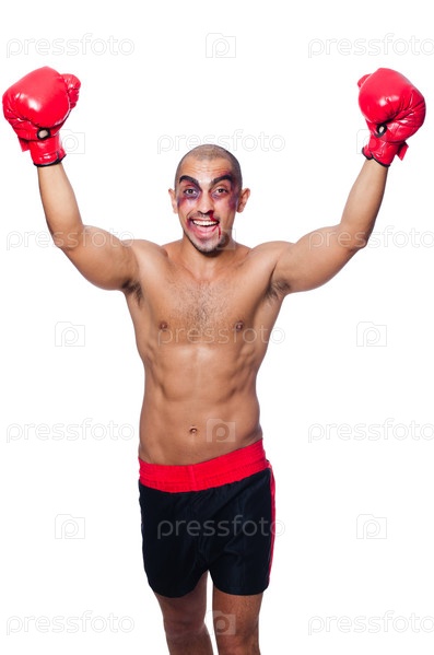Избитый боксер, изолированный на белом фоне