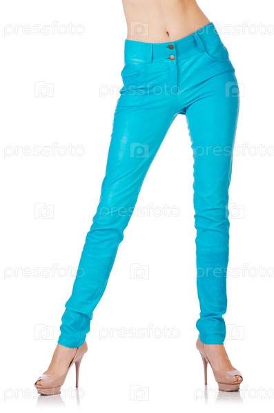 Женские ноги в синих брюках