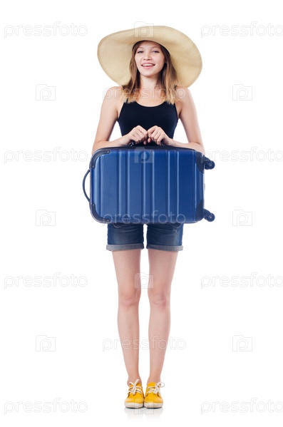 Молодая путешественница, изолированная на белом