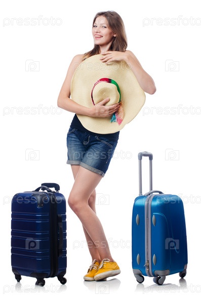 Молодая путешественница, изолированная на белом