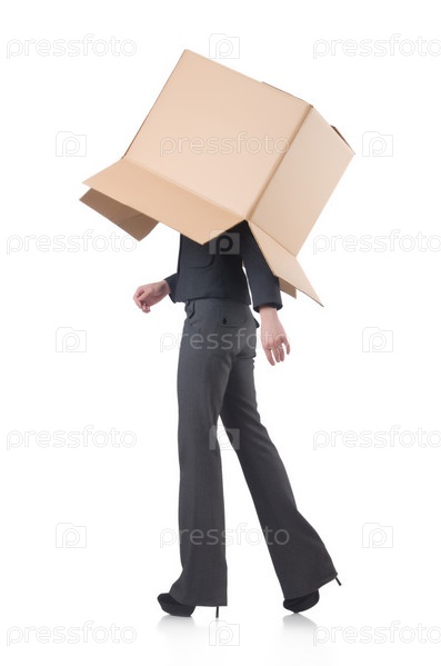 Деловая женщина с коробками на белом фоне