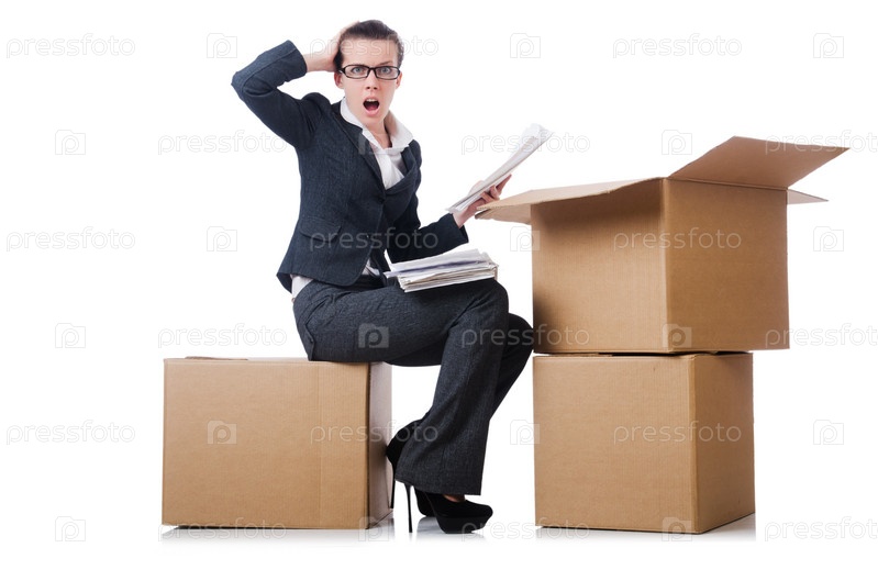 Бизнес-леди с коробками на белом фоне