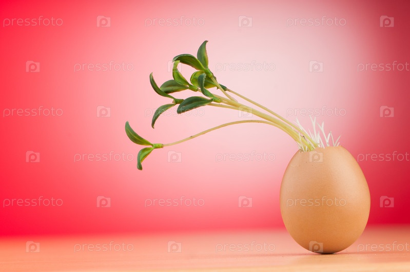 Яйца с зелеными ростками в концепции новой жизни