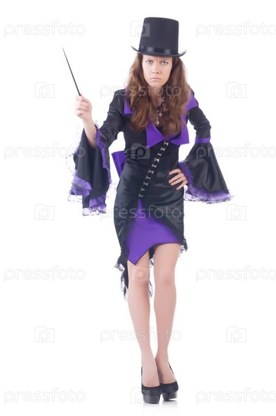 Женщина маг, изолированная на белом фоне