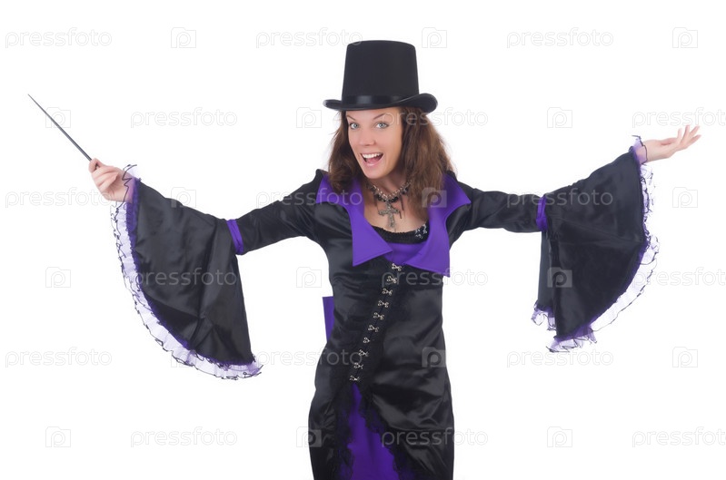 Женщина маг, изолированная на белом фоне