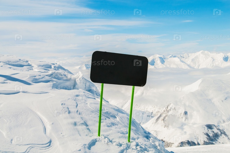 Зимние горы с пустым знаком