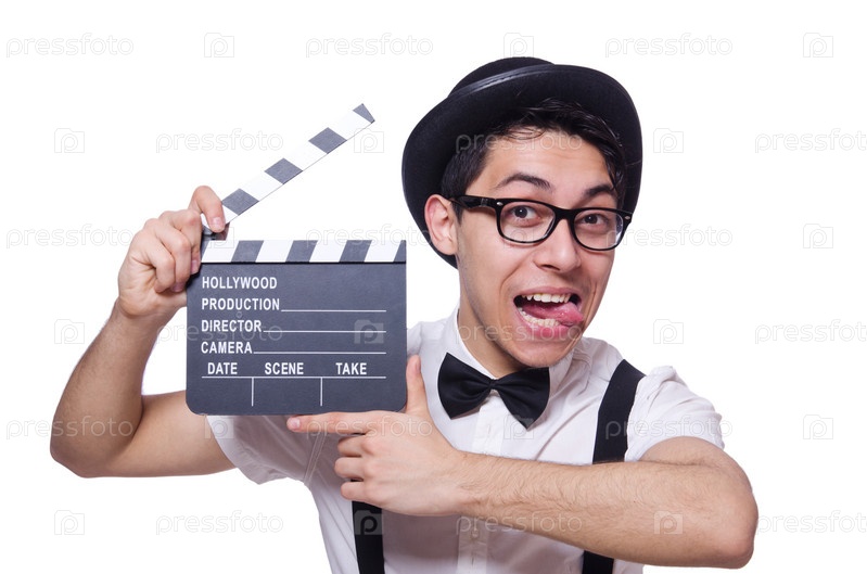Забавный человек с хлопушкой