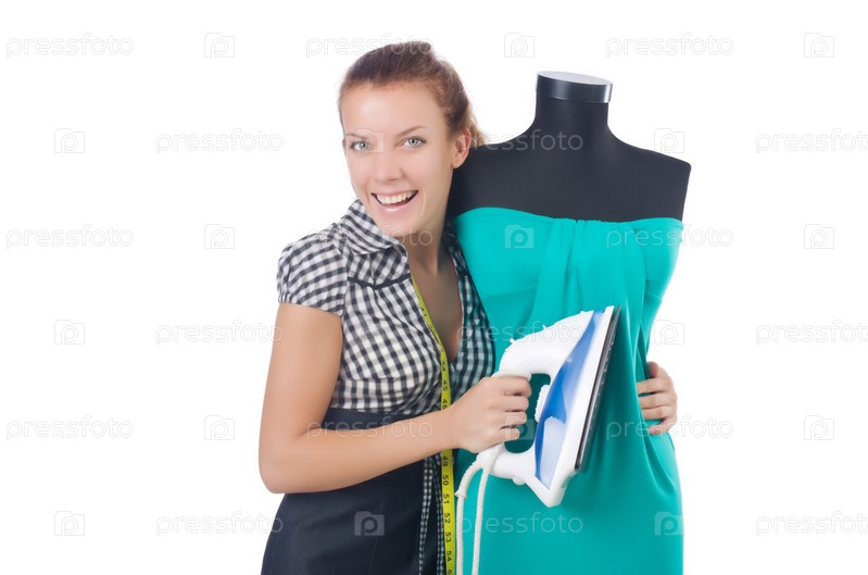 Портной работает на белом фоне
