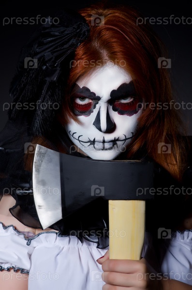 Женщина-монстр с топором в темной комнате