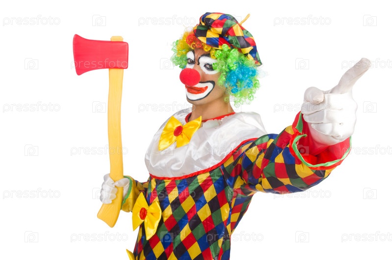 Клоун с топором, изолированный на белом фоне
