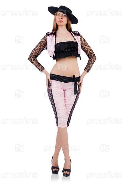 Женщина-тореадор, изолированная на белом