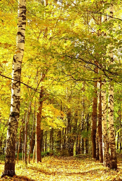 Золотой солнечный свет на тропе в октябрьском смешанном лесу