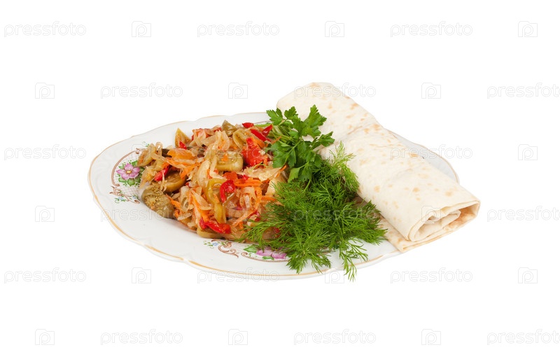 Овощной салат в лаваше на блюде