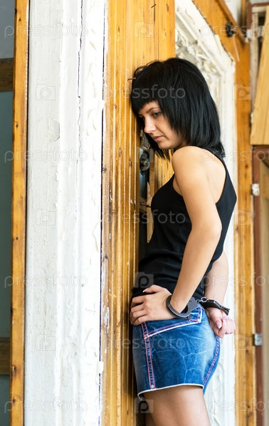 Арестованная женщина в наручниках