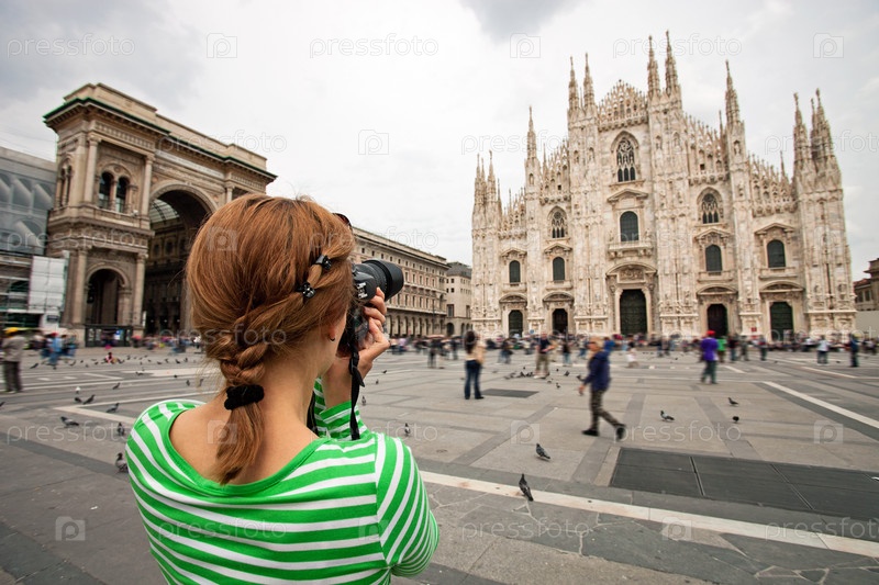 Женщина фотографирует Миланский собор, Италия