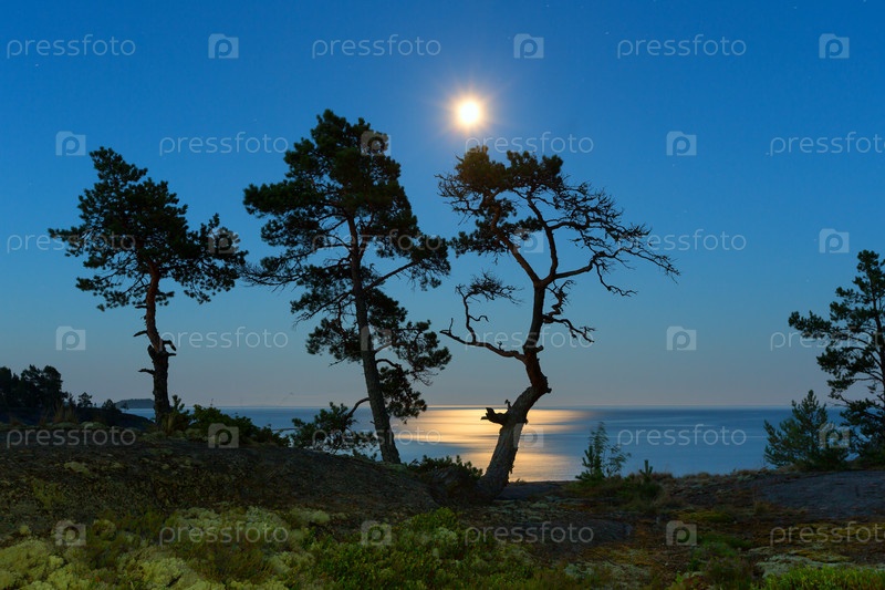 Ночной пейзаж с тремя деревьями