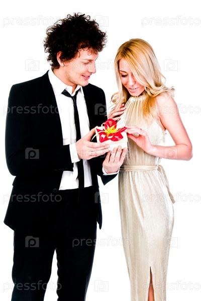 Мужчина дарит подарок красивой девушке