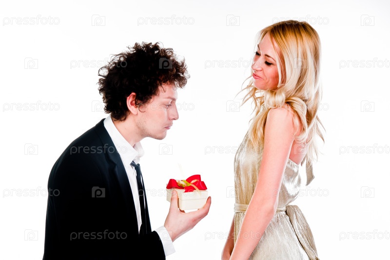 Мужчина дарит подарок красивой девушке