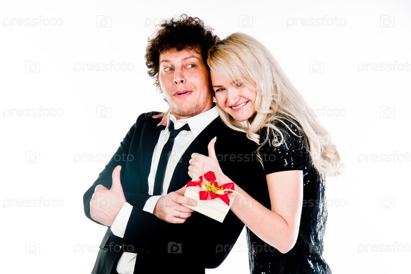 Мужчина дарит подарок красивой девушке