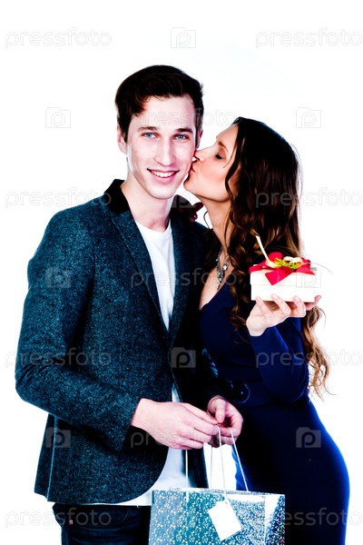 Мужчина дарит подарок красивой девушке