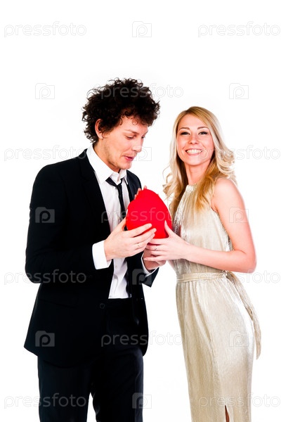 Мужчина дарит сердце красивой девушке