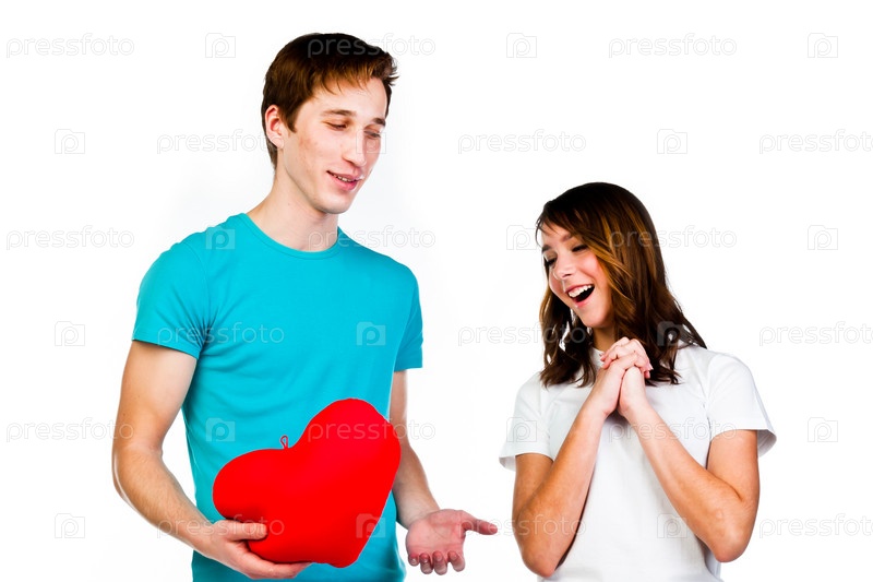 Мужчина дарит сердце красивой девушке