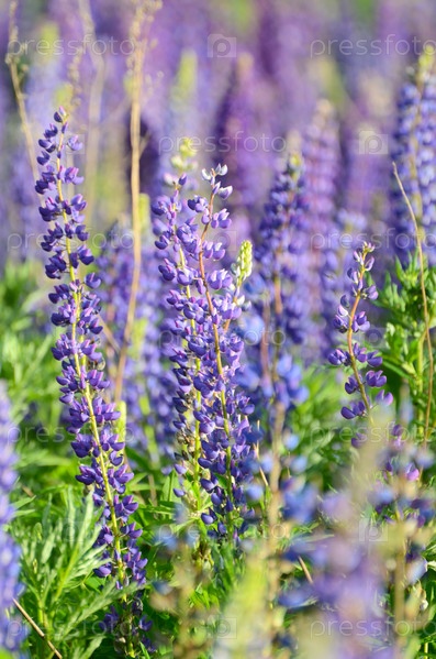 Люпины на поле крупным планом