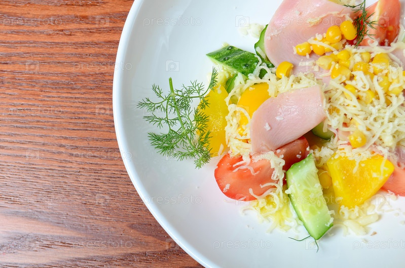 Салат из свежих овощей с ветчиной