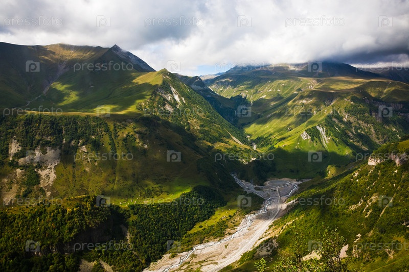 Облака над долиной реки Арагви в Грузии