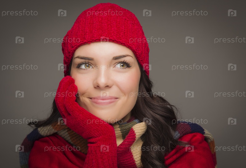 Радостная женщина в зимней шапке и перчатках