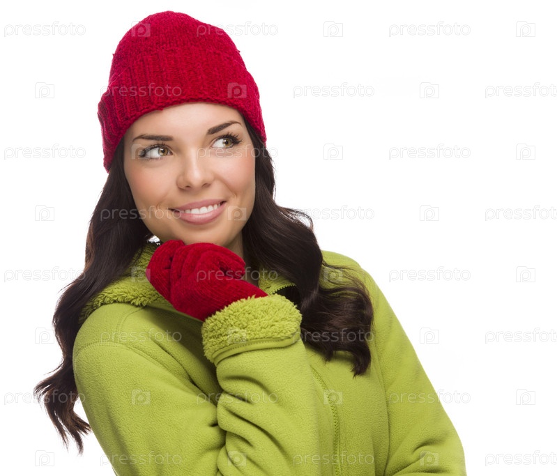 Радостная женщина в зимней шапке и перчатках