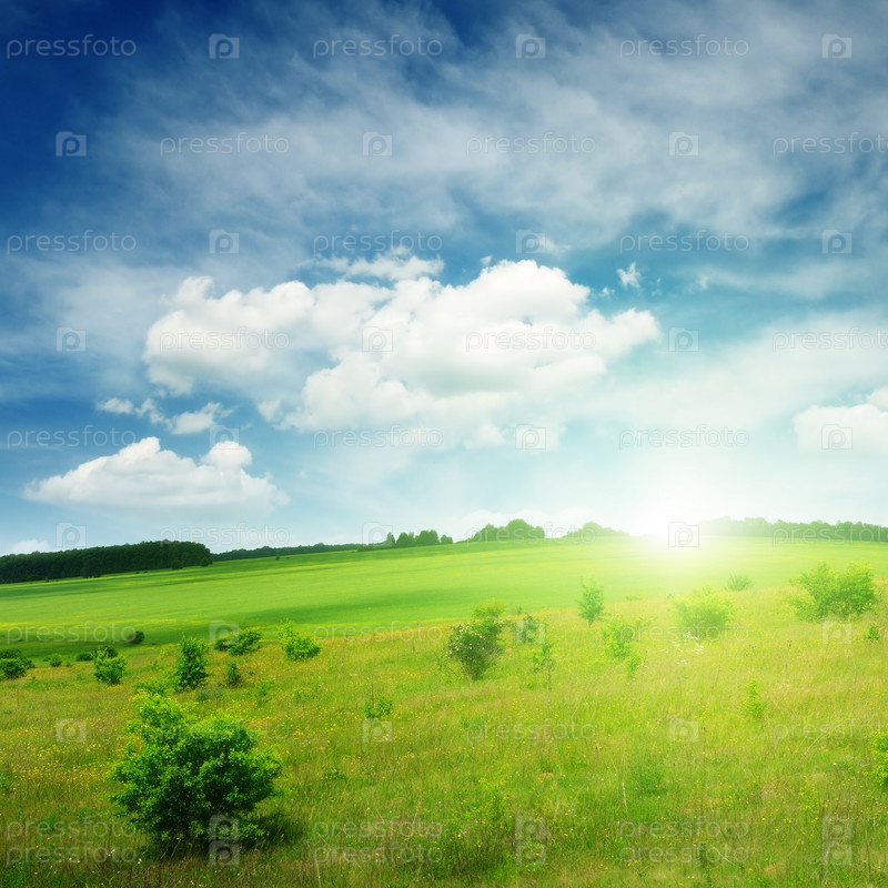 Закат на весенним полем