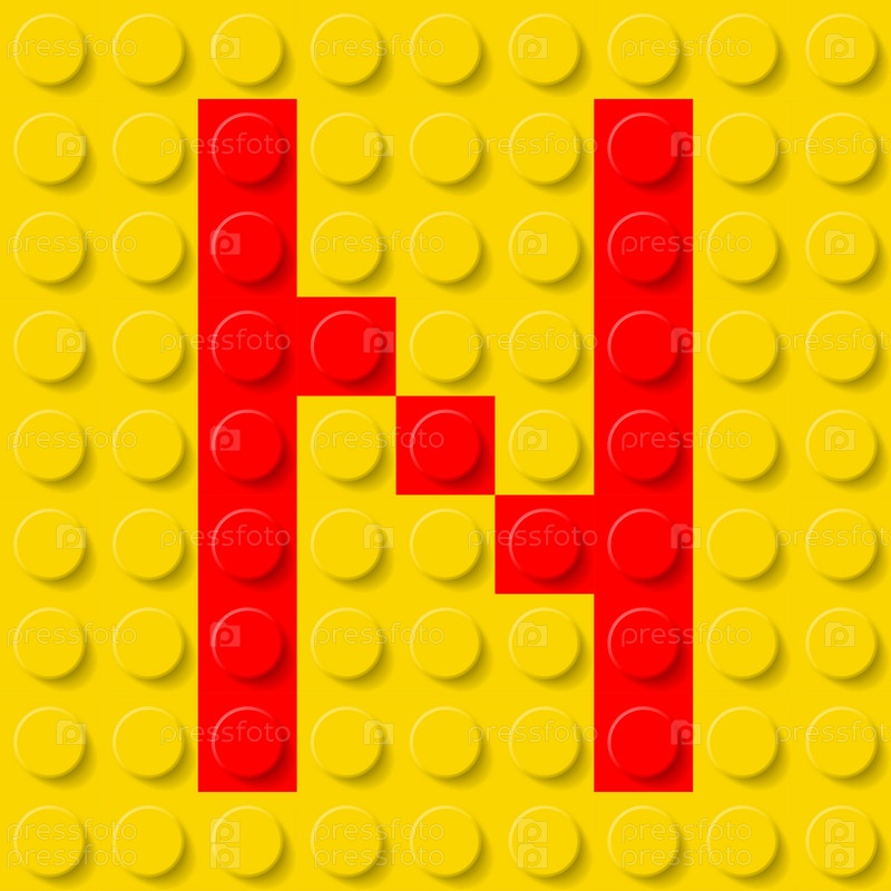 Красная буква N на желтой пластиковой детали конструктора