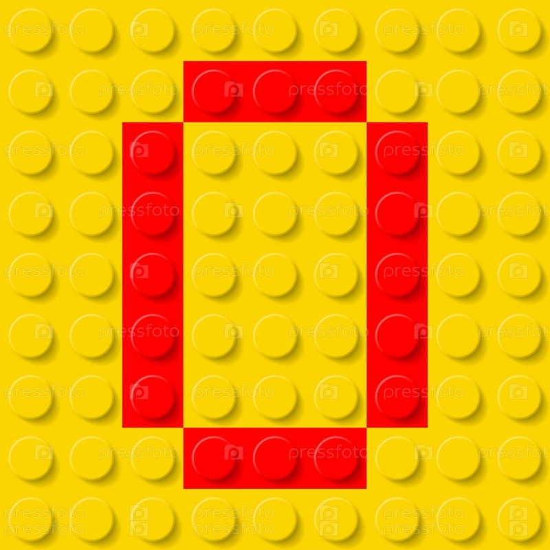 Красная буква O на желтой пластиковой детали конструктора