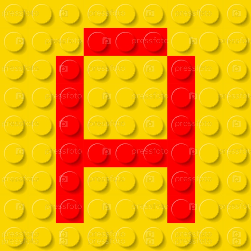Красная буква А на желтой пластиковой детали конструктора