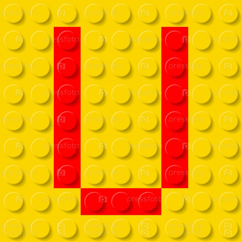 Красная буква U на желтой пластиковой детали конструктора
