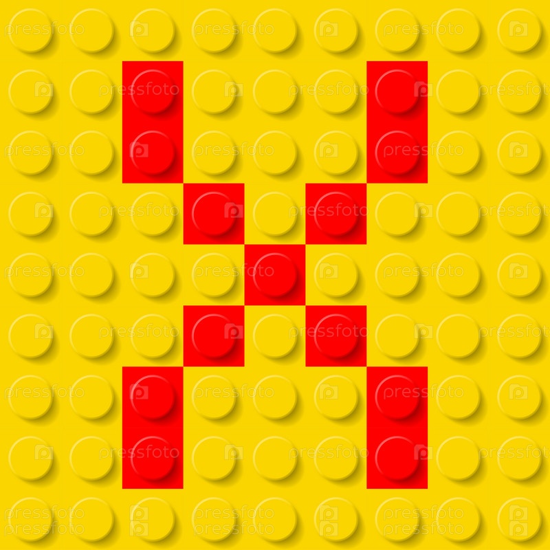 Красная буква X на желтой пластиковой детали конструктора