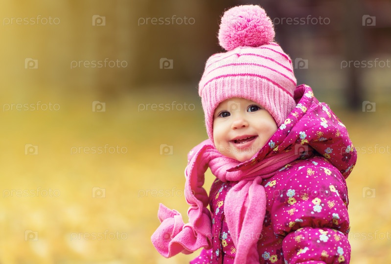 Смешная девочка в осеннем парке