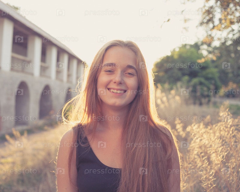 Блондинка на фоне осеннего заката