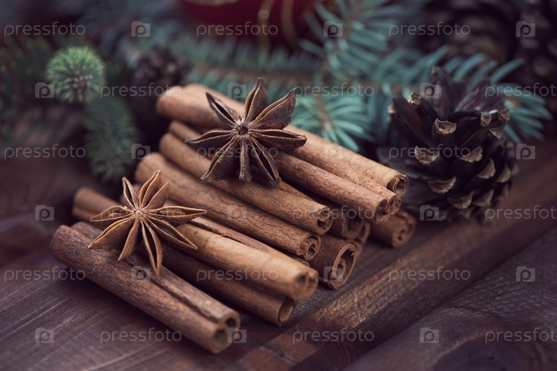 Рождественский натюрморт: корица, анис и шишки