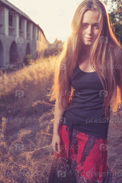 Блондинка на фоне осеннего заката
