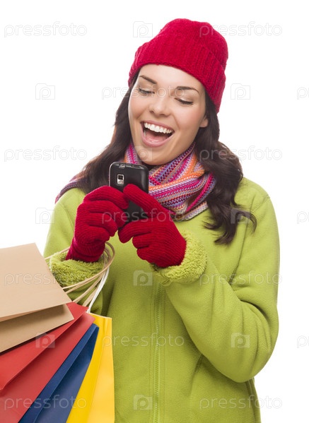 Женщина с пакетами говорит по телефону