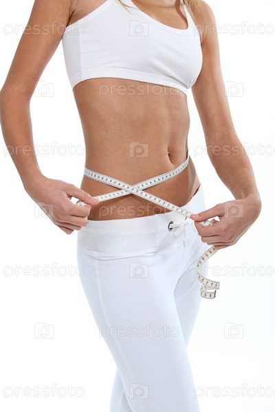 Стройная женщина измеряет талию