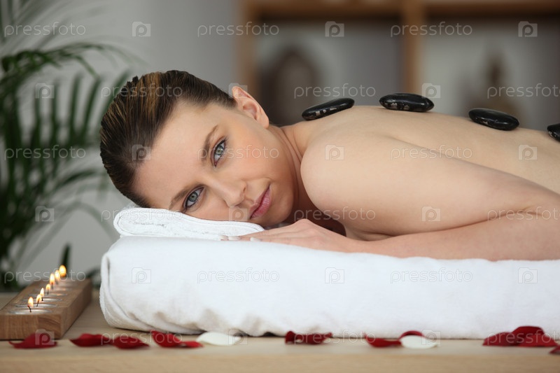 Женщина на массаже горячими камнями